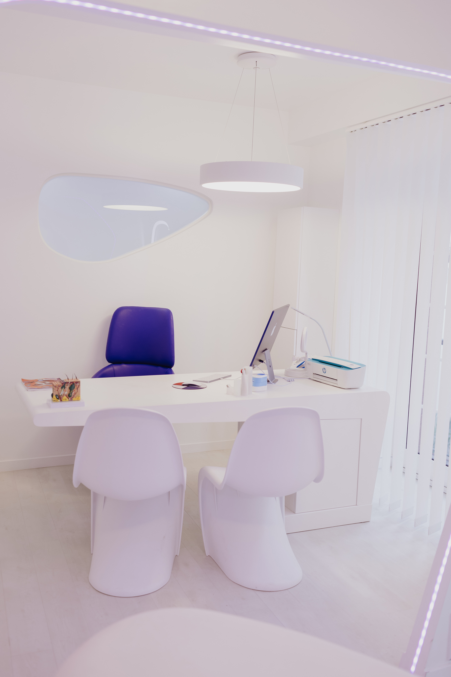 Na Clínica Space Age, cada detalhe foi pensado para oferecer uma experiência única, onde o ambiente é tão rejuvenescente quanto os tratamentos. As linhas limpas e os tons futuristas criam uma atmosfera que simboliza renovação e otimismo. Queremos que o espaço não seja apenas funcional, mas também inspirador – um reflexo do futuro saudável e equilibrado que desejamos para si.